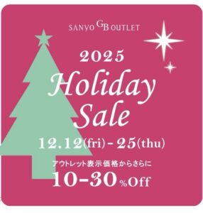 SANYO G&B OUTLET で 12月12日〜25日 に「Holiday Sale」が開催